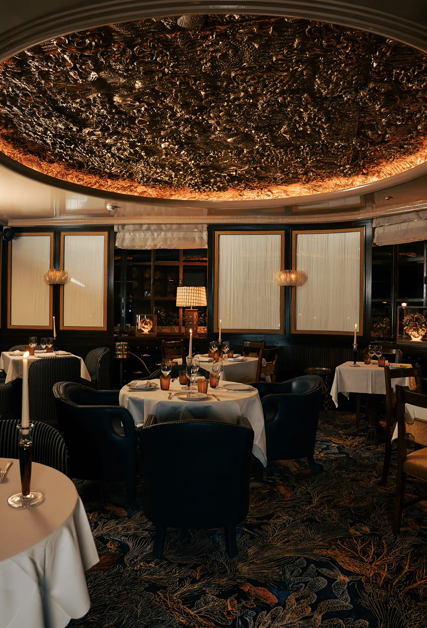 Avec son intérieur classé aux Monuments Historiques, ses bancs d’écailler et le ballet du service, il est le coeur battant de la maison. Cocktail-signature, dégustation sur le pouce ou caviar de nuit : notre bar offre une atmosphère unique en ville, 7/7 en service continu – late déjeuner ou early dîner – jusqu’à 2 heures du matin.